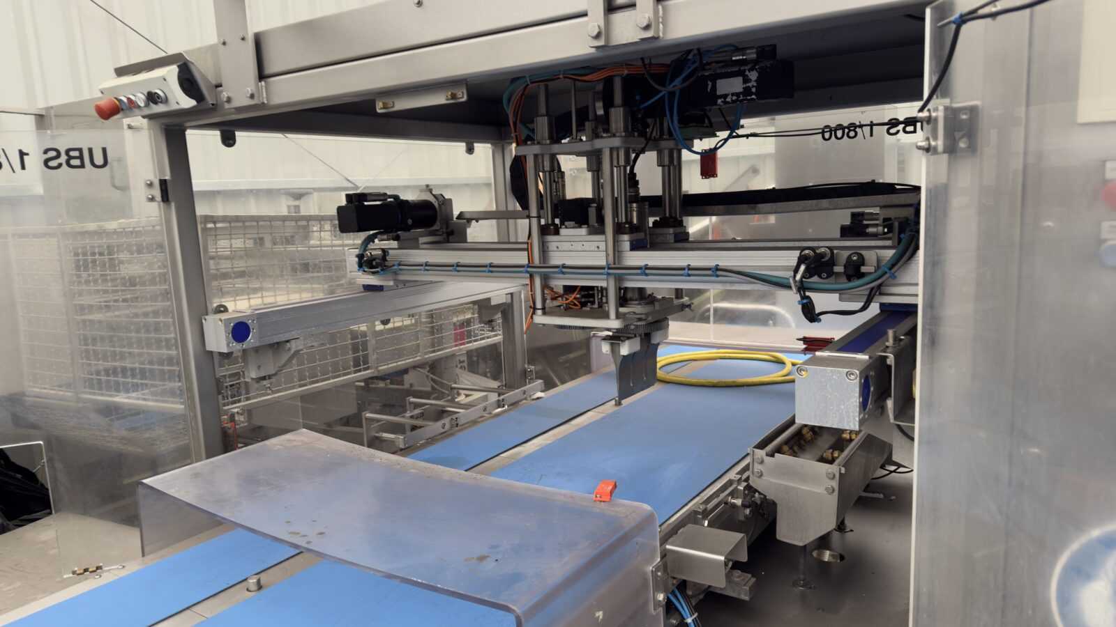 Kluczowe parametry i budowa: Urządzenie opiera się na stabilnej, całkowicie zamkniętej konstrukcji ze stali nierdzewnej, zabezpieczonej przejrzystymi osłonami z poliwęglanu dla bezpieczeństwa operatorów. Wewnątrz znajduje się zrobotyzowana głowica tnąca oraz system niebieskich przenośników taśmowych transportujących produkt. Ostrze drgające z częstotliwością ultradźwiękową sprawia, że krojony materiał nie przywiera do noża. Maszyna jest sprzedawana w stanie widocznym na załączonych zdjęciach. Zespół BMC MachFood oferuje ponadto możliwy remont maszyny – możemy przeprowadzić pełny serwis techniczny i renowację, przygotowując sprzęt w 100% do bezawaryjnej pracy w Twoim zakładzie.