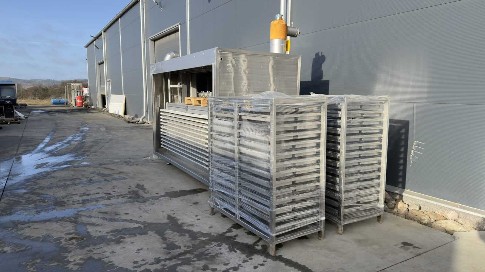 Kluczowe parametry i budowa: Urządzenie posiada masywną i trwałą konstrukcję wykonaną ze stali nierdzewnej, ułatwiającą mycie i spełnianie rygorystycznych norm higienicznych. Maszyna przystosowana jest do pracy z efektywnym czynnikiem chłodniczym NH3 (amoniakiem). Ogromnym atutem tego sprzętu jest dołączony w komplecie zestaw nierdzewnych wózków z tacami (regałów), który natychmiast usprawnia logistykę załadunku.